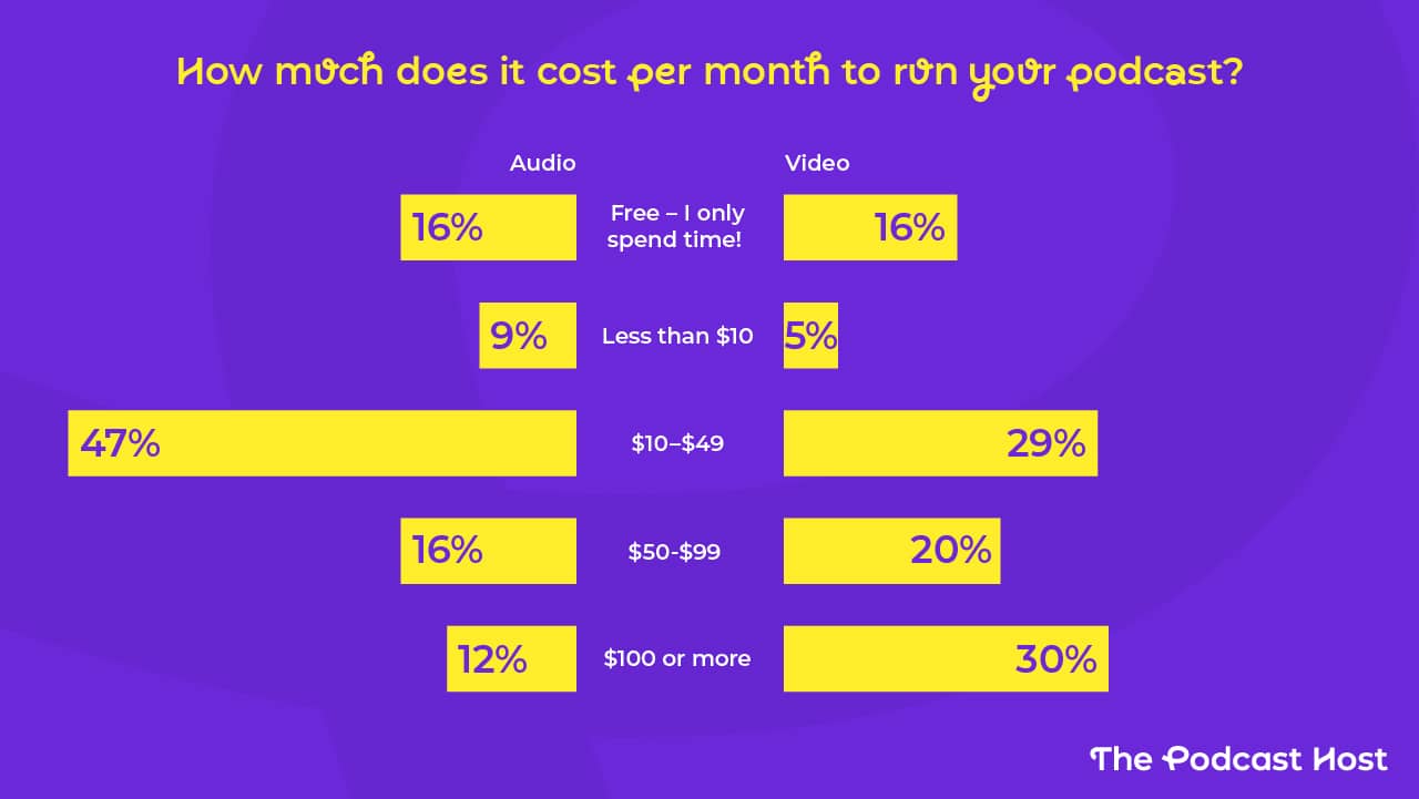 Video podcasters typically spend more than their audio-only counterparts. You need extra gear and software to make good video. This doesn't come free.